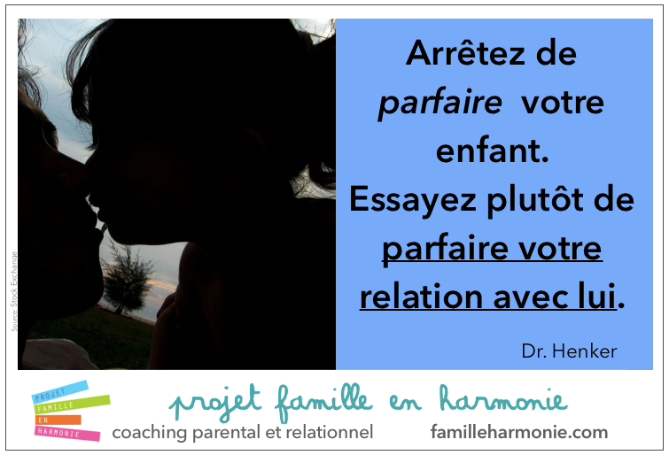 Alors, chaque jour, arrêtez de vouloir parfaire votre enfant ou vous-même et essayez de parfaire la RELATION que vous avez avec lui.