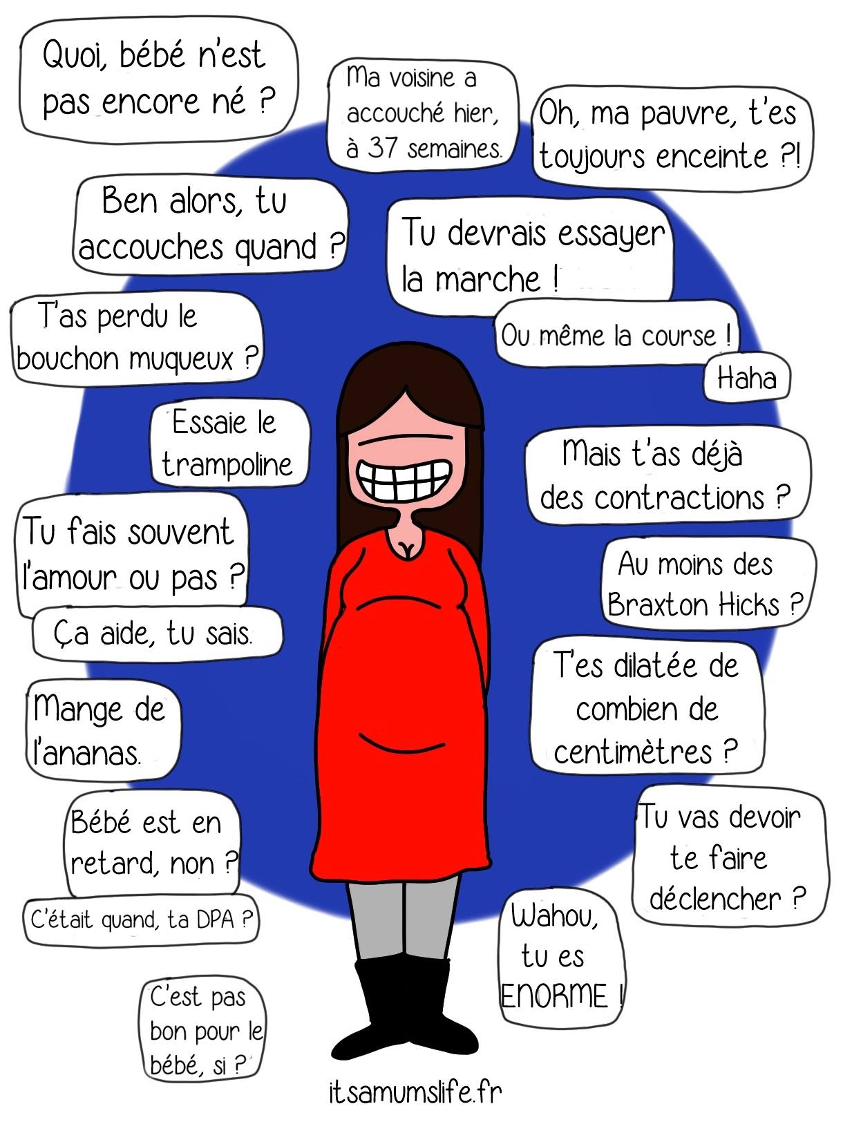 Pour les proactives : ne donnez pas la date « exacte » prévue d’accouchement (comme si elle existait vraiment et qu’il s’agissait d’une vérité absolue…la preuve!), restez vague ou ajoutez quelques jours voire semaines…